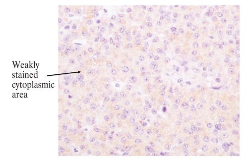 Figure 1C. Examples of cytoplasmic β-galactosidase immunostaining in normal pituitary (magnification x 1000). Normal pituitary: cytoplasmic staining score=2.