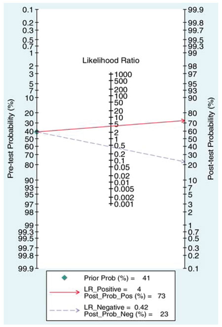 Figure 6. Fagan’s (Bayesian) nomogram of serum inhibin B for the prediction of the presence of spermatozoa in patients with non-obstructive azoospermia.32