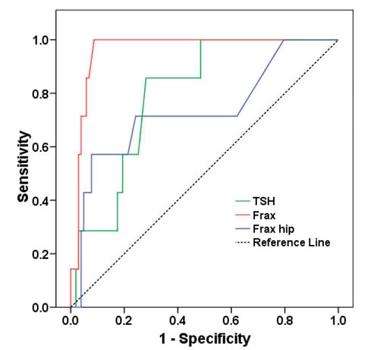 Figure 1. ROC curves for TSH and FRAX score in fracture prediction.