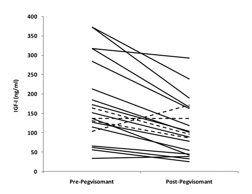 (pre IGF-I: median (IQR) 144.0 (109-248) ng/ml, post IGF-I: 98 (49-165) ng/ml;