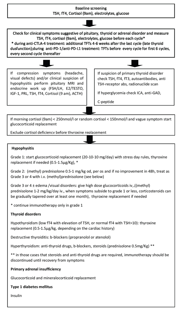 The specific approach to each endocrine IRAE is further discussed in the individual sections below.