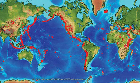 Figure 1. The ‘rings of fire’: distribution of active volcanoes around the world.